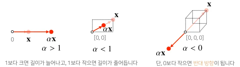 \alpha \mathbf{x} =\begin{bmatrix}\alpha x_1 \\\alpha x_2 \\\vdots \\\alpha x_d\end{bmatrix}