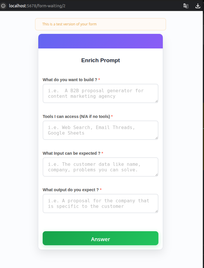 폼은 자동으로 생성되며, 사용자는 직접 대답을 입력한다.